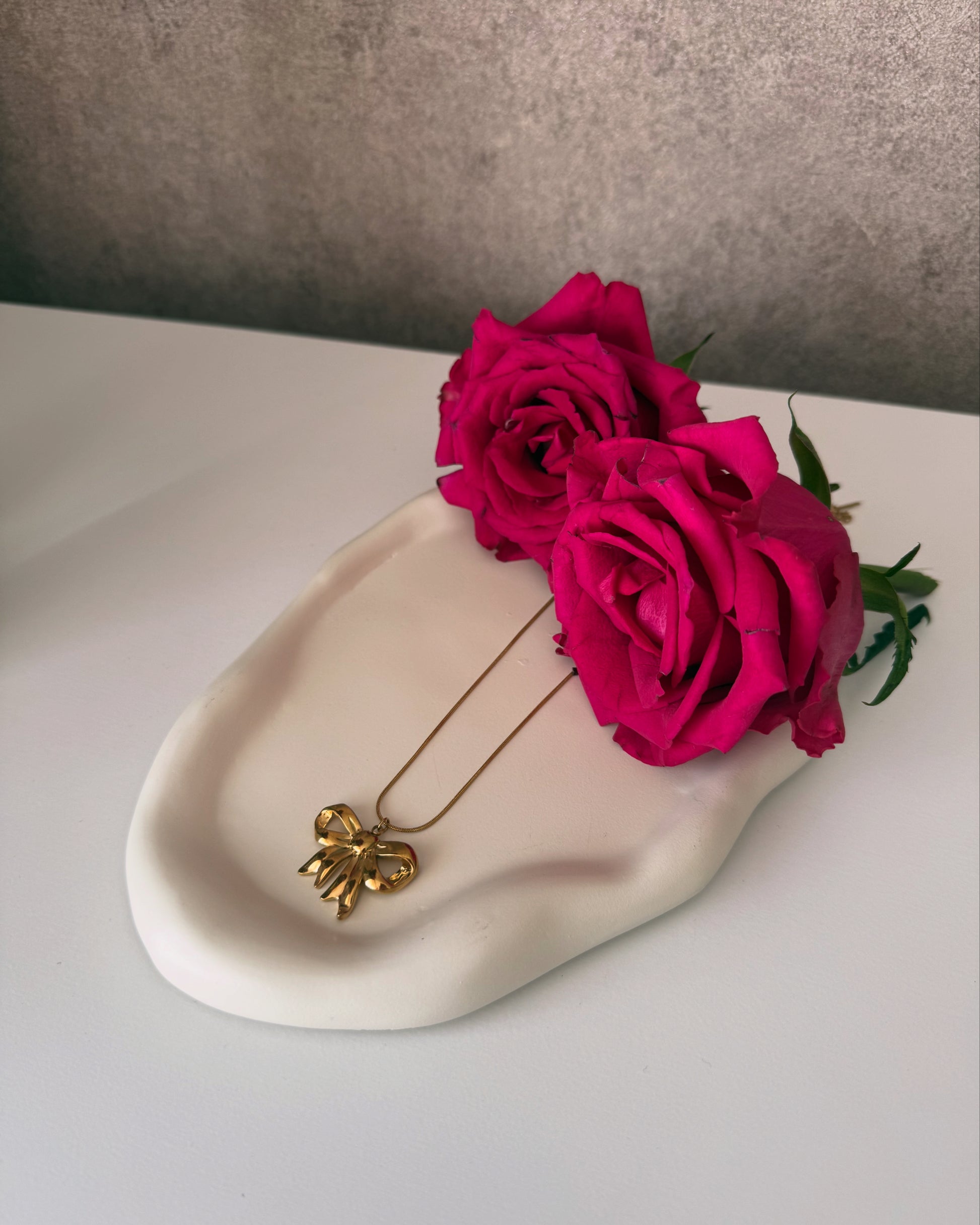 Zart, elegant und ein echter Blickfang: Die Golden Bow Halskette bringt feminine Leichtigkeit und stilvolle Raffinesse in dein Outfit. Der charmante Schleifenanhänger symbolisiert Anmut und Stärke in einem. Perfekt für besondere Anlässe – oder um dem Alltag einen Hauch von Eleganz zu verleihen.